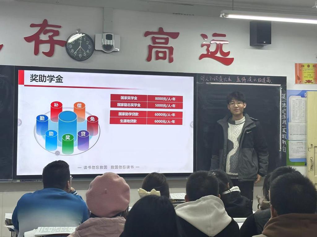 宣传大使们返回高中母校,积极宣传学校的资助政策及成效,争做资助政策的学习者、传播者、践行者。梁智超同学走进宝鸡高新实验中学,结合校史校情向学弟学妹们介绍了学校对于贫困学生的补助政策以及各类奖助政策,有效消除了“准大学生们”经济上的顾虑。王雅祺同学回到母校介休一中,结合ppt和学校宣传视频分享学校学院的发展历程、建设情况和丰富多彩的大学生活,讲述自己如何在国家资助政策的帮助下获得成长,鼓励大家坚定理想、勇于追梦。