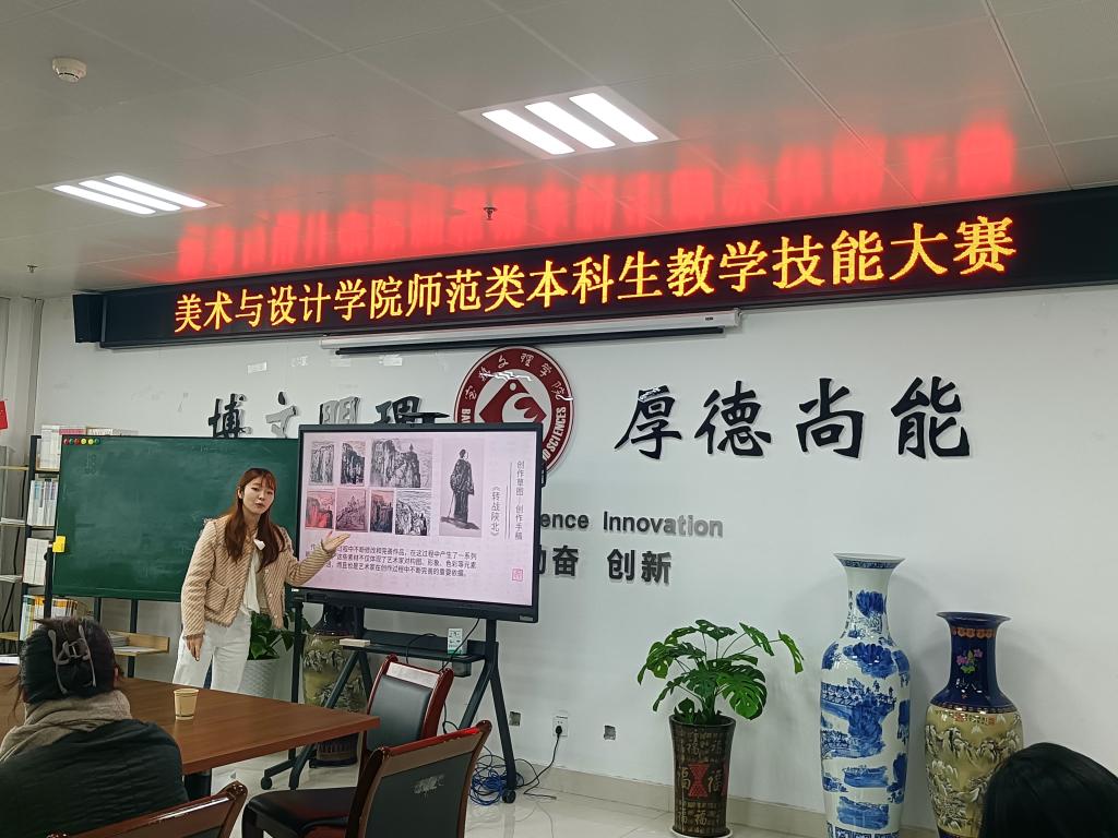11月5日下午,美术与设计学院在博文楼1301教室举办了“2025年美术学本科生师范技能大赛”,李强、魏育龙、王洁、沈利、王刚、祁小松担任大赛评委,2023级、2022级本科美术学专业共15名学生参加。最终推选马一媛、谷泽语、张尹参加学校举办的“2025年师范类本科生教学技能大赛”。