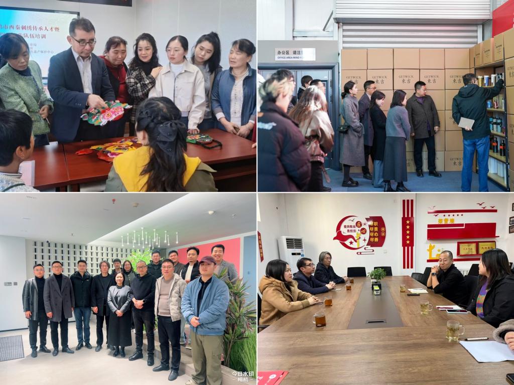 学院班子成员先后赴千阳县和宝鸡多家企业和单位同步开展民间美术调研、培训与访企拓岗工作。在实地考察千阳刺绣产业发展态势过程中,双方就人才输送、文创产品研发等方面达成初步合作共识,为后续校地协同推动非遗文化产业化发展搭建了沟通桥梁。在陕西东吉金属科技股份有限公司与宝鸡广诚建筑装饰设计有限公司,校企双方通过座谈交流、实地考察等形式,重点围绕金属工艺设计、建筑装饰方案设计、空间美学打造等领域展开讨论,从人才培养特色及毕业生技能优势、实习实训基地建设、项目联合攻关等合作方向达成合作意向。在宝鸡高新园林环卫市政建设管理有限公司和宝鸡市新城文化传媒有限公司走访调研时,双方围绕人才培养、岗位需求、实习实训基地建设、校企合作模式创新等核心议题展开深入洽谈,一致表示将以此次走访为契机,进一步深化沟通协作,推动建立长期稳定的校企合作关系,实现人才供给与产业需求的精准匹配。