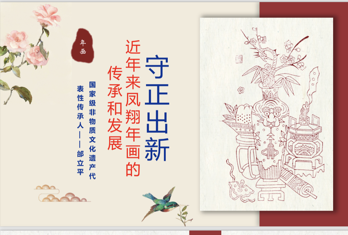 6月1日(周四)14:30,中国工艺美术大师邰立平应邀在高新校区博文楼副楼301举行学术报告,报告题目为《守正出新-近年来凤翔年画的传承与发展》。
